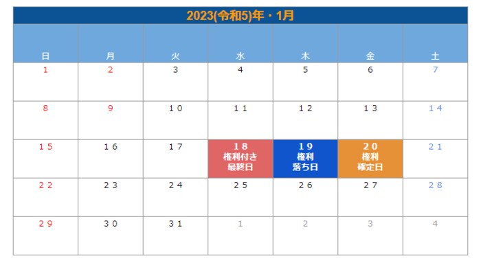※権利付き最終日:株主がその株式を保有することで株主優待などの株主権利を受けることができる最終売買日