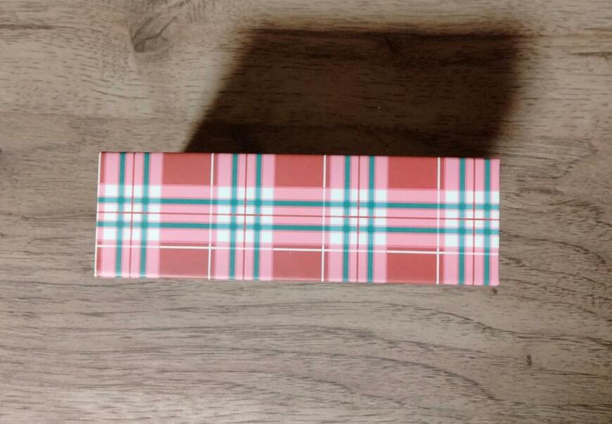 チェック柄の背表紙もおしゃれです。かわいいものが好きな方へのギフトボックスに最適です。