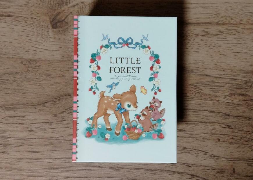 こちらはホワイトデザインです。小鹿とアライグマがイチゴの収穫をしています。