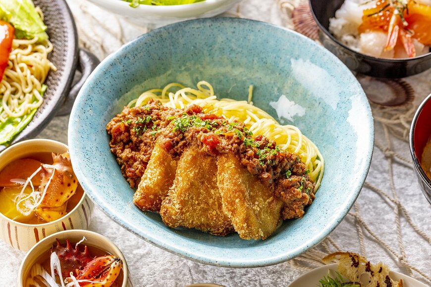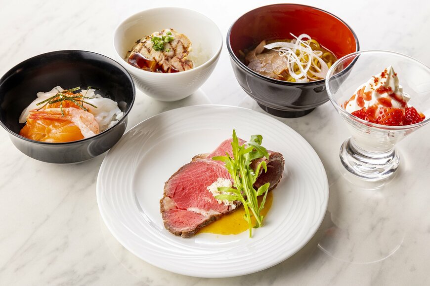 北海道のワサビクリームを添えたジューシーな「ローストビーフ」をはじめ、北海道のご当地メニュー「室蘭カレーラーメン」「十勝豚丼(ディナーのみ提供)」などをライブ感あふれるパフォーマンスで提供してくれます。