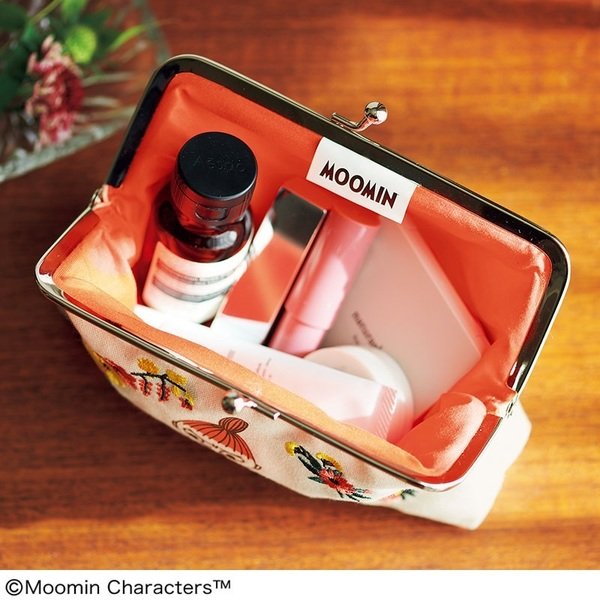 3月号増刊の特別付録は、とってもかわいいがま口ポーチが登場しました。リトルミイのまわりのお花を刺しゅうで表現した華やかなデザインに仕上げています。毎日持ち歩きたいコスメなどを入れるのにちょうどいいサイズ感が特徴です。