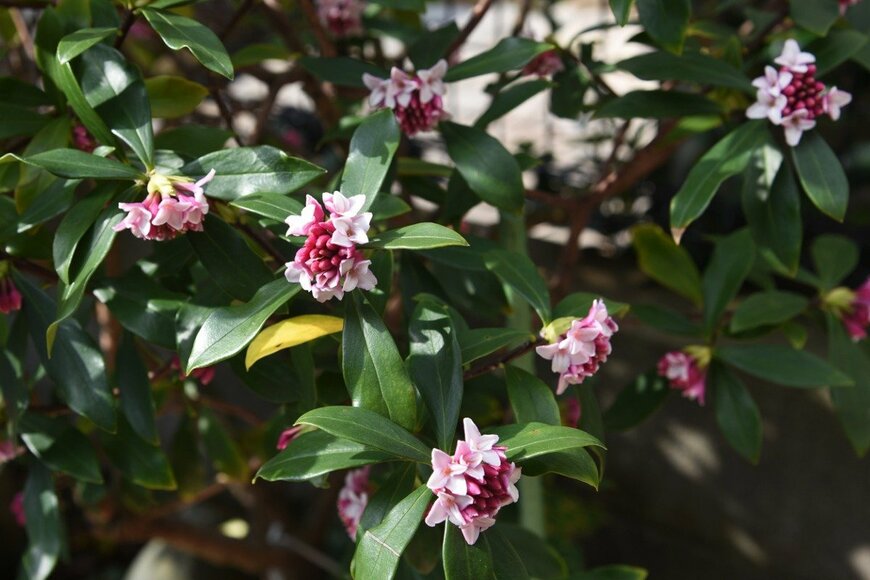 三大香木のひとつであるジンチョウゲはクチナシ、キンモクセイと並んで、香りのよい樹木として知られる低木です。甘く濃厚な香りは世代を超えて親しまれ、樹高も低いことから庭や玄関回りの植栽としてよく植えられています。