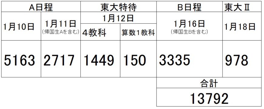 例えば、栄東中学校では毎年志願者が1万人を超え、1月17日時点での出願者数は1万3000人を超しています。
