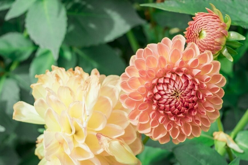 華やかで美しい花が咲くダリアは、初夏~秋ガーデンの主役となる球根植物。大輪や小輪、ポンポン咲き、デコラティブ咲きなど、花の形や色合いが豊富なので好みに応じて育てることができます。