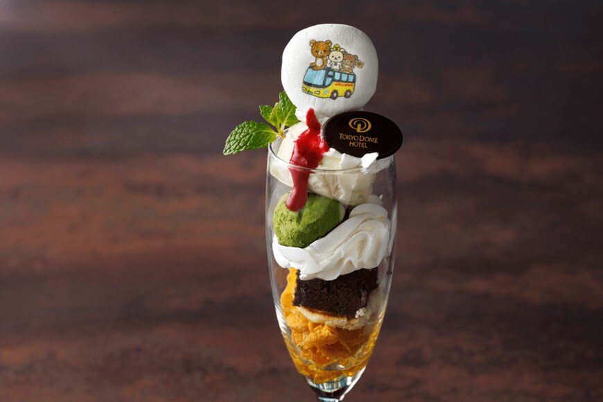 東京ドームホテル「リラッサ」のブッフェでは、リラックマパフェのデザート付き!リラックマのコラボイラストが描かれたマシュマロが目を引きます。パフェの中にはリラックマが好きなお団子やパンケーキも入っていますよ。