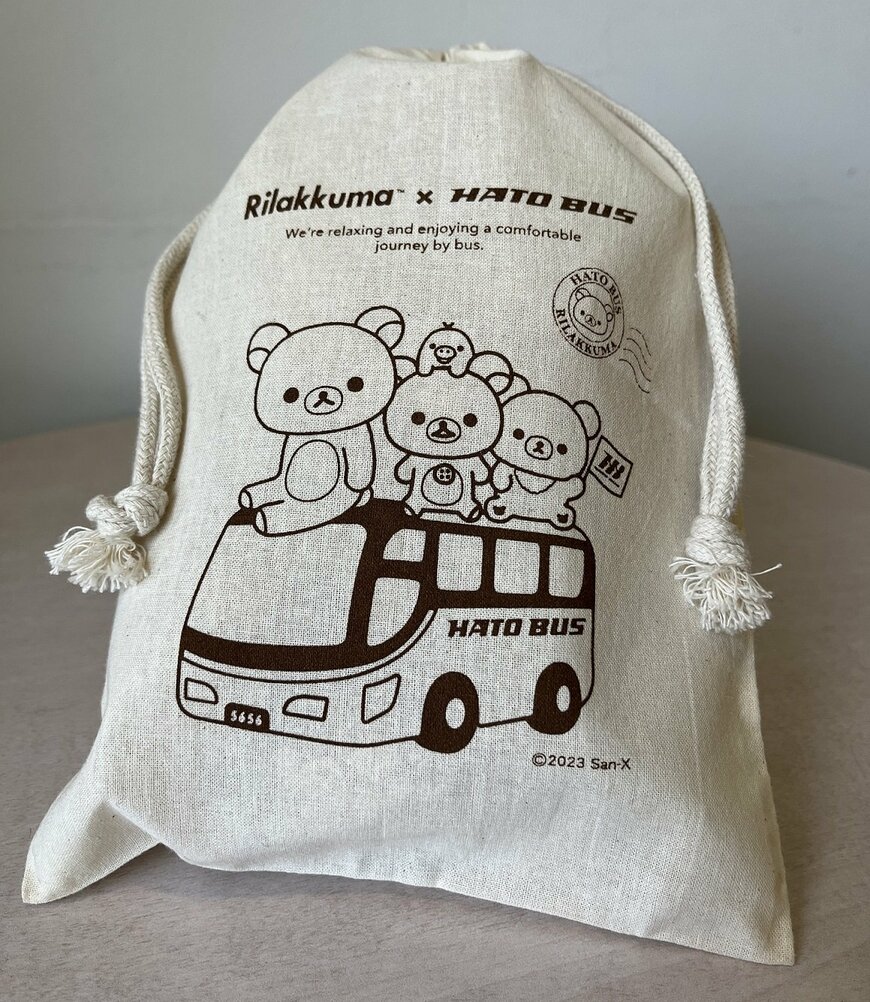 さらに浅草の観光拠点「雷5656会館」で人気の雷おこしが入ったリラックマ巾着をお土産に。リラックマのかわいさはそのままに、シンプルなデザインとなっているのでアフターユースにも使えそうですね。