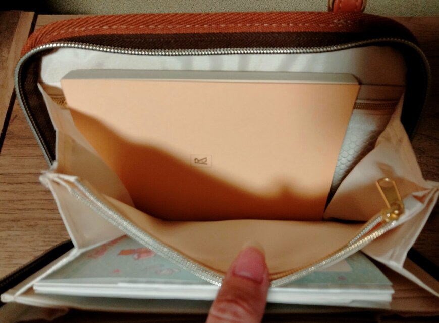 通帳も入るサイズなので、印鑑や通帳といった貴重品の保管用ポーチとして活用しても良さそうです。