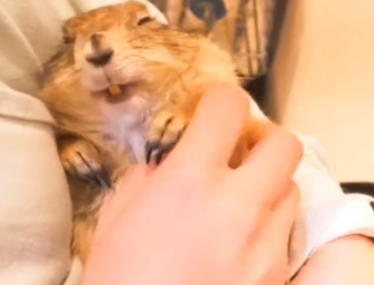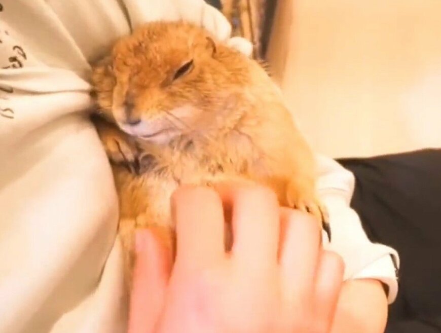 飼い主さんはブイくんを抱っこしながら、脇やお腹を優しくナデナデしています。人間の赤ちゃんのように抱っこされている姿がとっても微笑ましいです……!