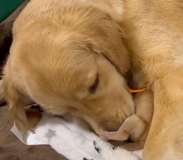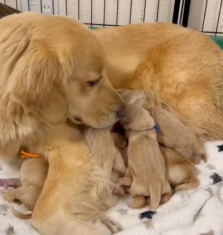 リプライ欄には「優しいお母さんの顔。とってもキレイです」「優しいお顔で仔犬を舐める姿が感動でしかありません……」「誰に教わったわけでもなく、我が子に授乳して育てている。感動しました」といった書き込みが多数寄せられています。