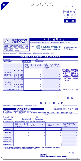 年金振込通知書とは、日本年金機構から送付される通知書のことです。