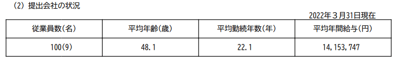 テレビ東京ホールディングス(提出会社)の2022年3月末時点での従業員数、平均年齢、平均勤続年数および平均年間給与は以下の通りです。