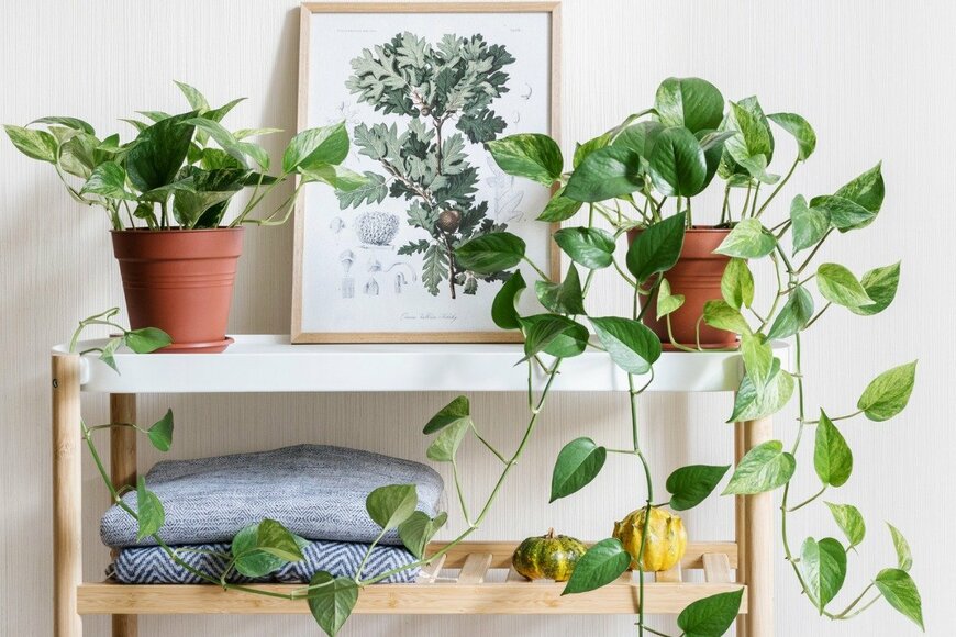 ツル性の観葉植物は初心者も育てやすい品種が多く、長く伸びたツルと葉がインテリアをオシャレに演出します。