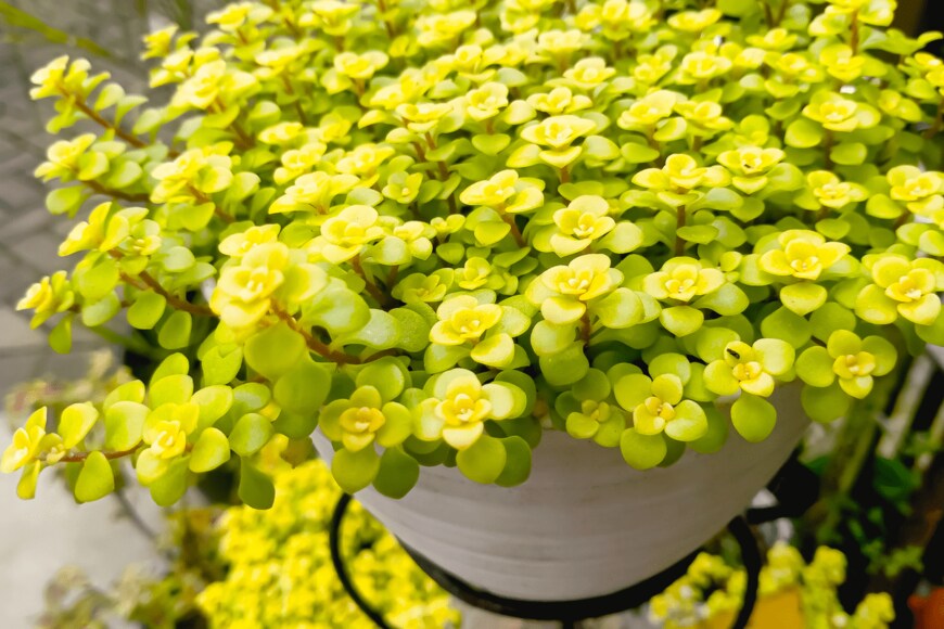 リシマキアには横に広がるタイプと縦に伸びるタイプがあり、品種が豊富。葉色は明るいライムグリーンから、渋めの黒褐色までバリエーション豊かです。