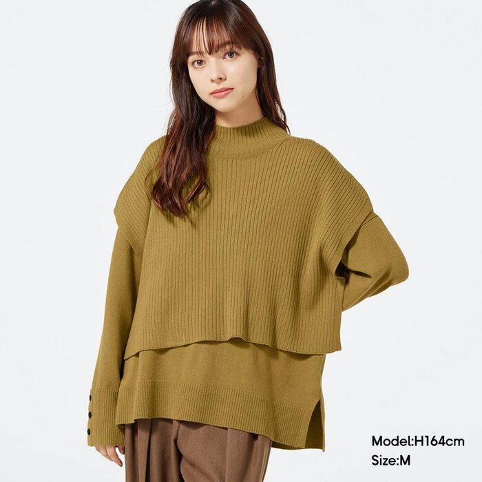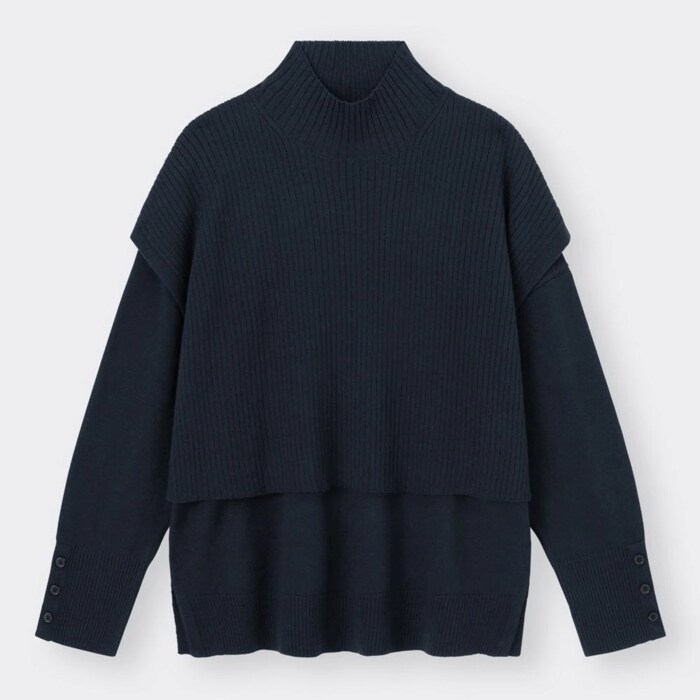 セーターとベストそれぞれ1枚でも、2枚セットにしても着られるマルチウェイセーターです。その日のコーディネートや気温に合わせ、お好みに合わせて着回せます。ベスト部分は身幅を広く取っていて、手持ちのインナーとも合わせやすいデザイン。セーター部分はほどよい開き加減のVネック、袖口にはボタンがあしらわれ、1枚でもオシャレに着こなせます。どちらにもサイドスリットがあり、レイヤードにもぴったり。カジュアルにも、フェミニンにも大活躍する商品です。