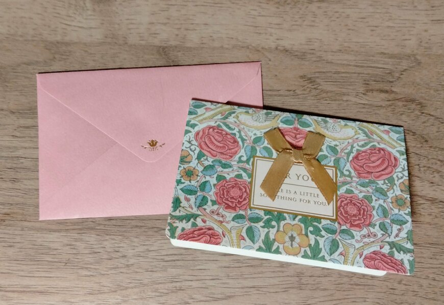 封筒は、薔薇と同じカラーのピンクです。かわいらしさをギフトにプラスしてくれるでしょう。