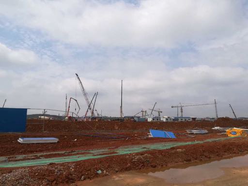 チャンシンICの工事現場は5月末にすでに杭100本を打設し、武漢YMTCよりも明らかに工事が進捗している。躯体工事も始まり、9月までには棟上げする予定で進んでいる。