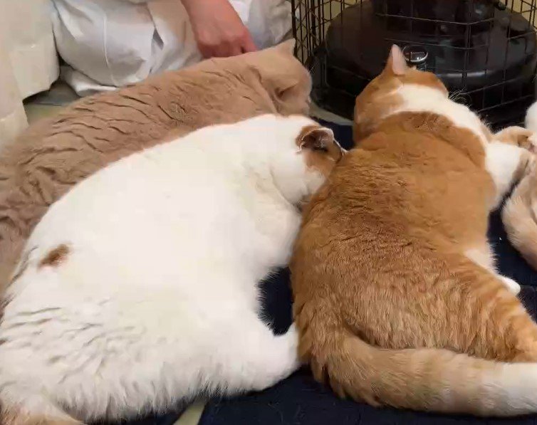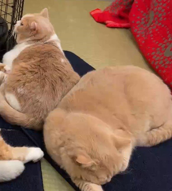 あんみつちゃんととんかつくんは熟睡しているのでしょうか、微動だにせず横たわっていました。