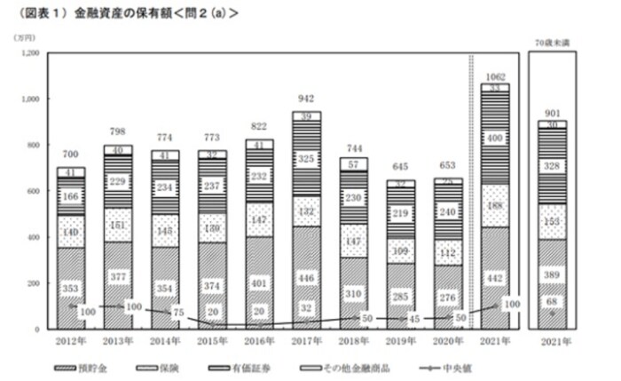 特に増加しているのが預貯金と有価証券。有価証券に関しては、コロナ禍で起きた投資ブームが影響しているのかもしれません。
