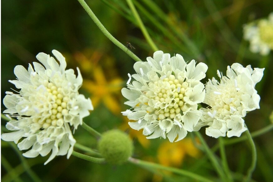 美しい花を咲かせるスカビオサはナチュラルな寄せ植えにぴったりの植物。草丈の低い品種から高い品種までありますが、寄せ植えには矮性種がオススメです。※参考価格:400~600円前後(3号ポット苗)