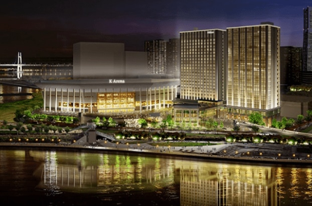 60・61街区には、2万席を誇る世界最大級の音楽アリーナ「Kアリーナ横浜」に、ホテル棟とオフィス棟のツインタワーを併設。