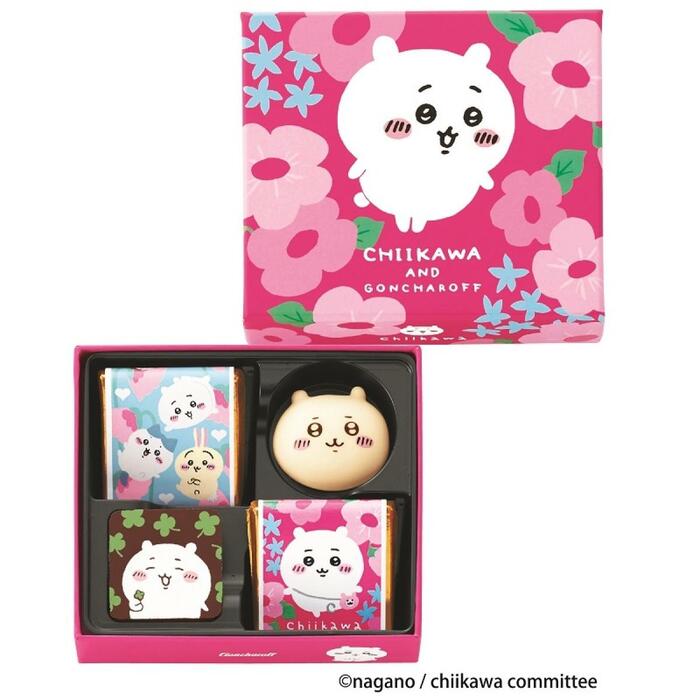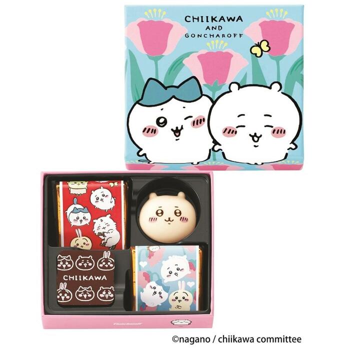 人気のキャラクター「ちいかわ」とゴンチャロフのコラボチョコレートです。イトーヨーカ堂・イズミ限定のオリジナルブランドで、ちいかわと仲間たちをかわいくデザイン。「ちいかわ」「ハチワレ」「うさぎ」などのパッケージに、ちいかわ顔型のプリントチョコレートなど4個詰め合わせました。6種を展開し、税込378円というプチプライスもうれしいポイントです。