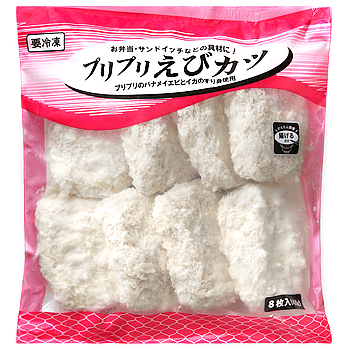 うま味たっぷりのプリプリしたバナメイエビとイカのすり身を使ったエビカツです。揚げたそのままはもちろん、余裕があれば千切りのキャベツと一緒にパンに挟んでエビカツサンドにしてもボリューミーでおいしいですよ。