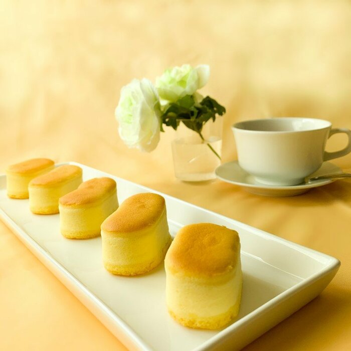 「ふんわりプチチーズ10個入」は販売価格がプライスダウン! 1296円(税込)から1080円(税込)に変更となりました。デンマーク産のクリームチーズを使用。香りと口溶けのよい、しっとりしたスフレチーズケーキです。