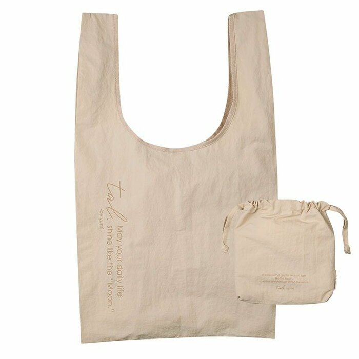 おしゃれで便利なコンパクトエコバッグは、巾着付で持ち運びやすく、手や肩に負担がかかりにくい太目の持ち手がポイントです。巾着と中のバッグそれぞれに、シンプルな大人可愛いプリント入で、くすみカラーも今っぽくお洒落。
