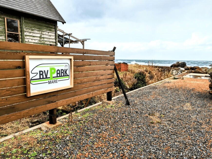 福井県の越前海岸に位置する「Cafe MARE」に併設されたRVパーク。手ぶらでBBQができるほか、極上のプライベートラウンジやゲストハウスを完備しています。