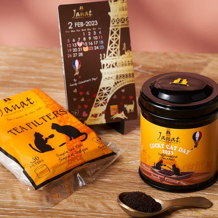 また、爽やかな酸味が口いっぱいに広がる「ビターオレンジチョコレート」と、ほろりとほどける食感のクッキー「ポルボロン」入り。甘い香りにほっこり癒される「ジャンナッツ キャラメルティー」と一緒に楽しめそうですね。パリを思わせるエッフェル塔のデザインが可愛らしいオリジナルカレンダーも入っています。