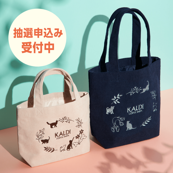 カルディでは、お得でかわいいセット商品を企画・販売しています。今回ご紹介する「ネコの日バッグ」もそのひとつです。毎年人気のアイテムのため、今回は実店舗分を事前抽選により販売、公式オンラインストア分は通常販売をおこないます。