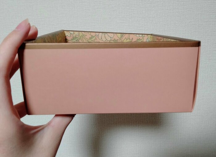 側面部分は、ピンクがかったミルクティー色です。上品なデザインなので、年配の女性の方へのギフトにも活用できそうです。