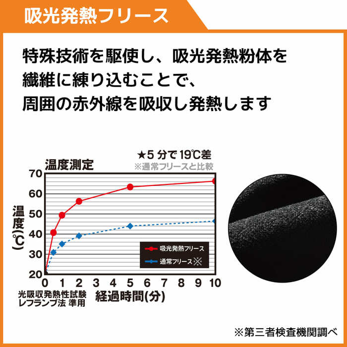 写真のように、通常のフリースと比較して、熱を取り込みやすい素材のようです。