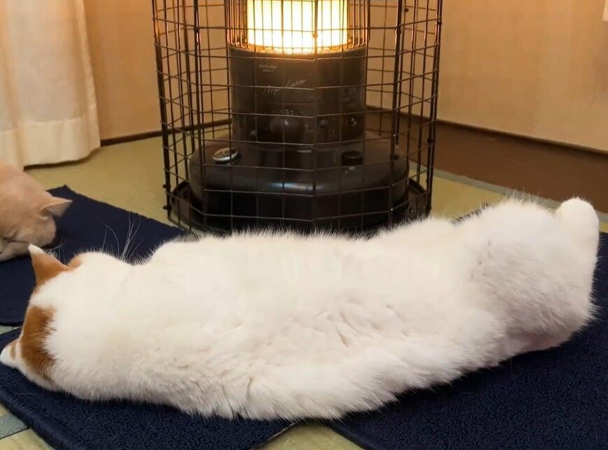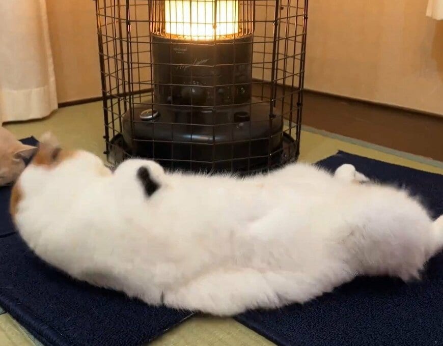 なお、投稿主さんは安全のためにストーブガードを被せていて、ストーブの側面はほんのり温かい程度とのこと。ちょうどよい温度感に、あんみつちゃんも心地よさを感じたのかもしれませんね。