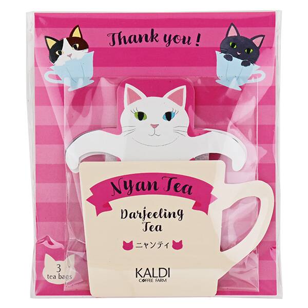 内容量は、7.5g(2.5g×3個)となっていて、3種類の猫(白猫、グレーネコ、ぶちネコ)がマグカップにのります。 紅茶は、特有のスモーキーでさわやかな香りのダージリン。後味はすっきりとしていて程よい渋みが残ります。