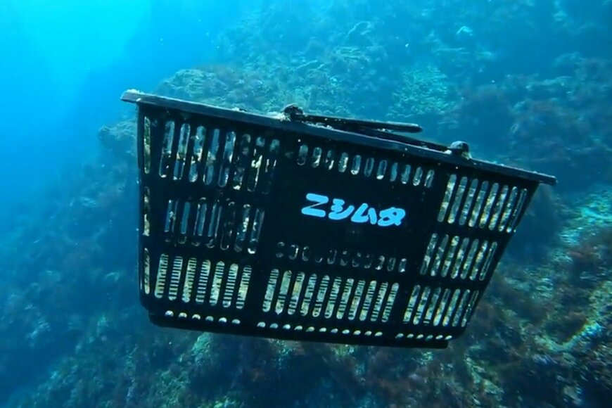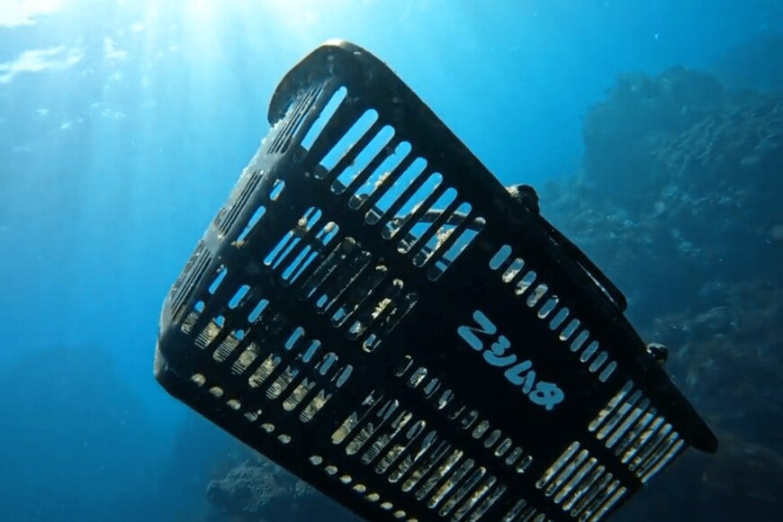「伊豆半島にてニシムタの買い物カゴ発見。調べたところ南九州のホームセンターとの事。 風に吹かれ黒潮に乗りまた風に吹かれたどり着いたのでしょうか。もちろん回収しましたが、流れ着く生物だけでは明確にイメージできない季節来遊魚のルートを感じさせてくれてありがとニシムタ」というコメントともに投稿されたのは、8秒の動画でした。