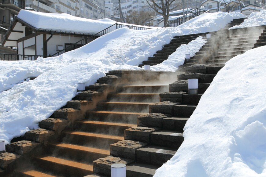 その他にも、気軽に利用できる足湯や、むかし石段に使われていた石を敷石に使った石段の湯があるなど、魅力あふれる温泉街です。