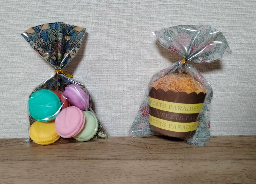 セリアの「モリスデザインのクリアバッグ」はカップケーキが1個入るサイズ感!