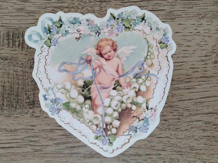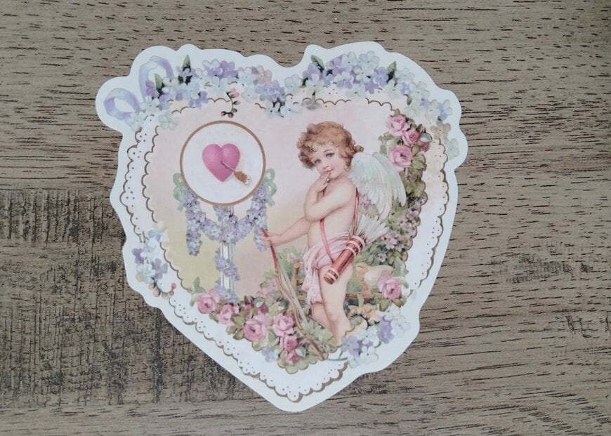 こちらは伏し目がちのキューピッドがかわいいデザインです。キューピッドの手からはためいているリボンがおしゃれです。