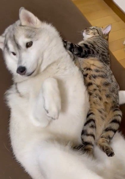 するとユキちゃんの顔をチラッと見て、ゆっくりとした動きでその場を去るサンくん。その背中からは少々名残惜しそうな雰囲気も伝わってきます……!もっと一緒に寝ていたかったのかな?と想像が膨らむワンシーンでした。