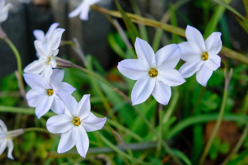 3~4月に可愛らしい花を咲かせるイフェイオン。星型のホワイトやピンク、イエローカラーの花はチャーミングな雰囲気です。