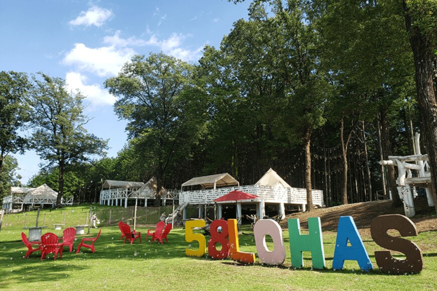 2022年12月28日、栃木県矢板市の元ゴルフ場にオープンしたグランピング施設。豊かな自然を活かした多種の体験コンテンツが可能な複合型施設「58ロハスクラブ」の中に位置しています。