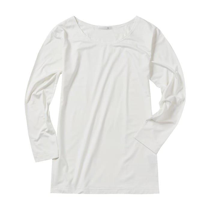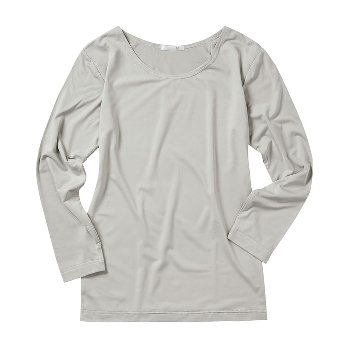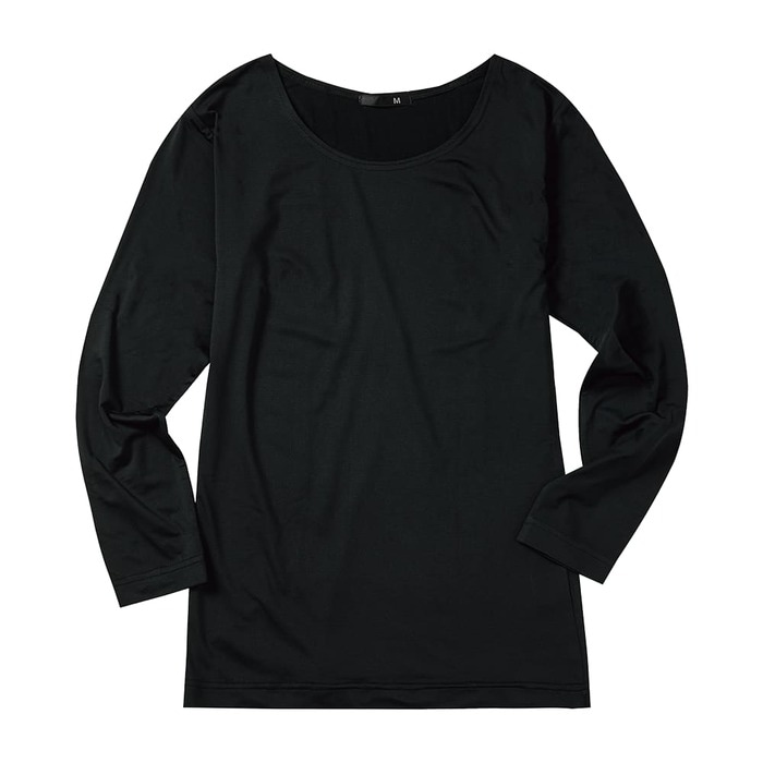 寒い日も快適に過ごせる裏起毛のレディースインナー。広めのラウンドネックで首元がスッキリ見えるので、着脱がしやすくインナーとして使いやすいのがポイントです。無地かつシンプルなカラー展開で、どんな服とも合わせやすく、幅広く活躍しそうなアイテムですね。