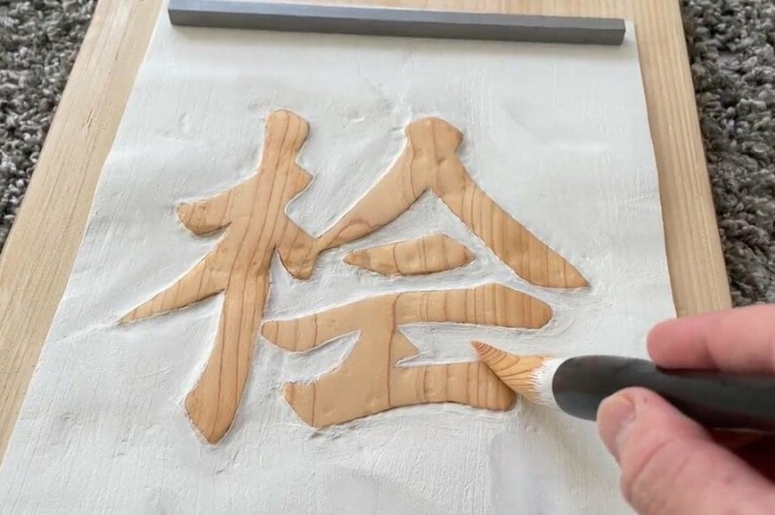 よく見てみると、半紙や「桧」という文字、筆までもが木で作られていることが分かります。あまりのリアルさに脳が錯覚を起こしてしまいそうになりますね。
