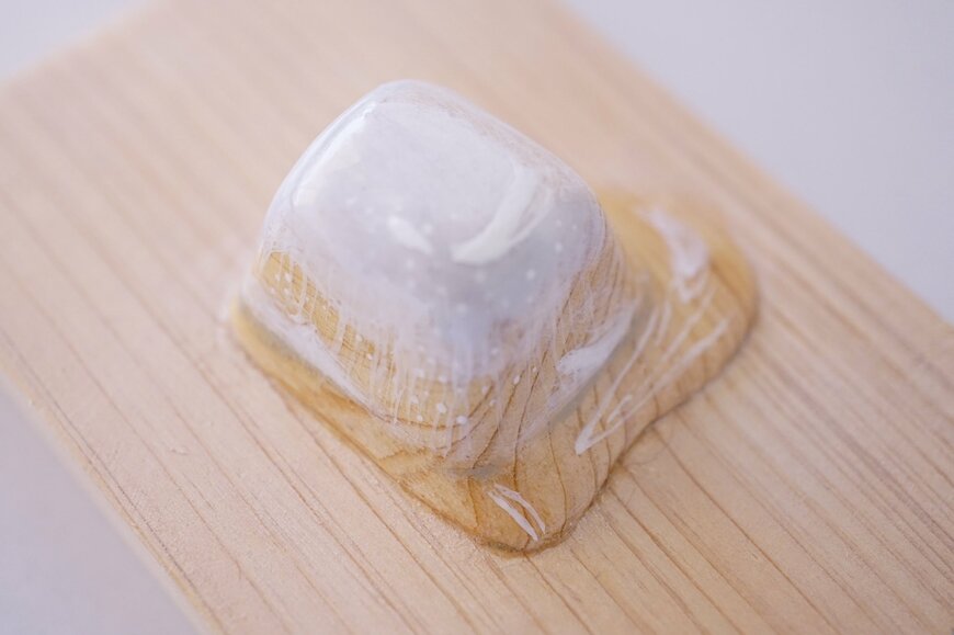 まな板の上で溶ける氷や薄いティッシュペーパー、泡立つ石鹸など、どれも木でできているとは思えないリアルな作品ばかり。