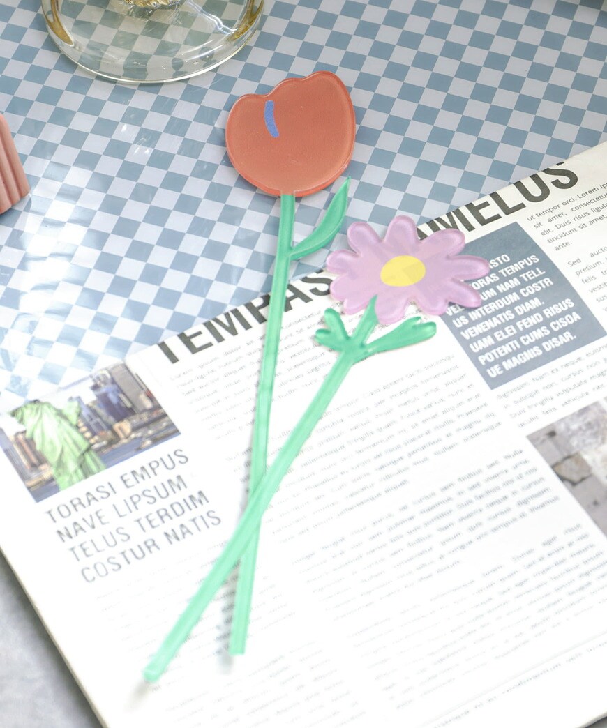 韓国っぽインテリアで使われていることが多い「デイジー」と「チューリップ」がかわいいアクリルフラワーです。330円(税込)で2本セットとなっています。