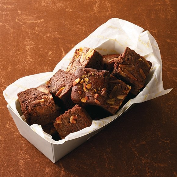 ローストしたアーモンドとくるみをたっぷりのせて、下にはアクセントにチョコレートをかけた、外はさっくり中はしっとりの濃厚ブラウニーです。6個入りと12個入りの2種類あります。バレンタインの贈り物にもおすすめの商品です。