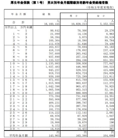 3.1 厚生年金の平均月額(受給者権数1618万445人)