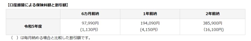 口座振替で2年前納した場合、1万6100円が割引されます。