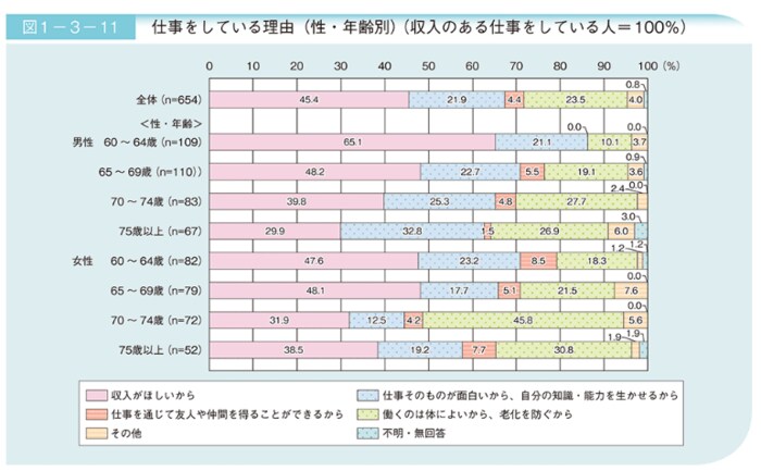 この仕事をしている理由を内閣府の「高齢者の背経済生活に関する意識(2)」を参考に確認します。